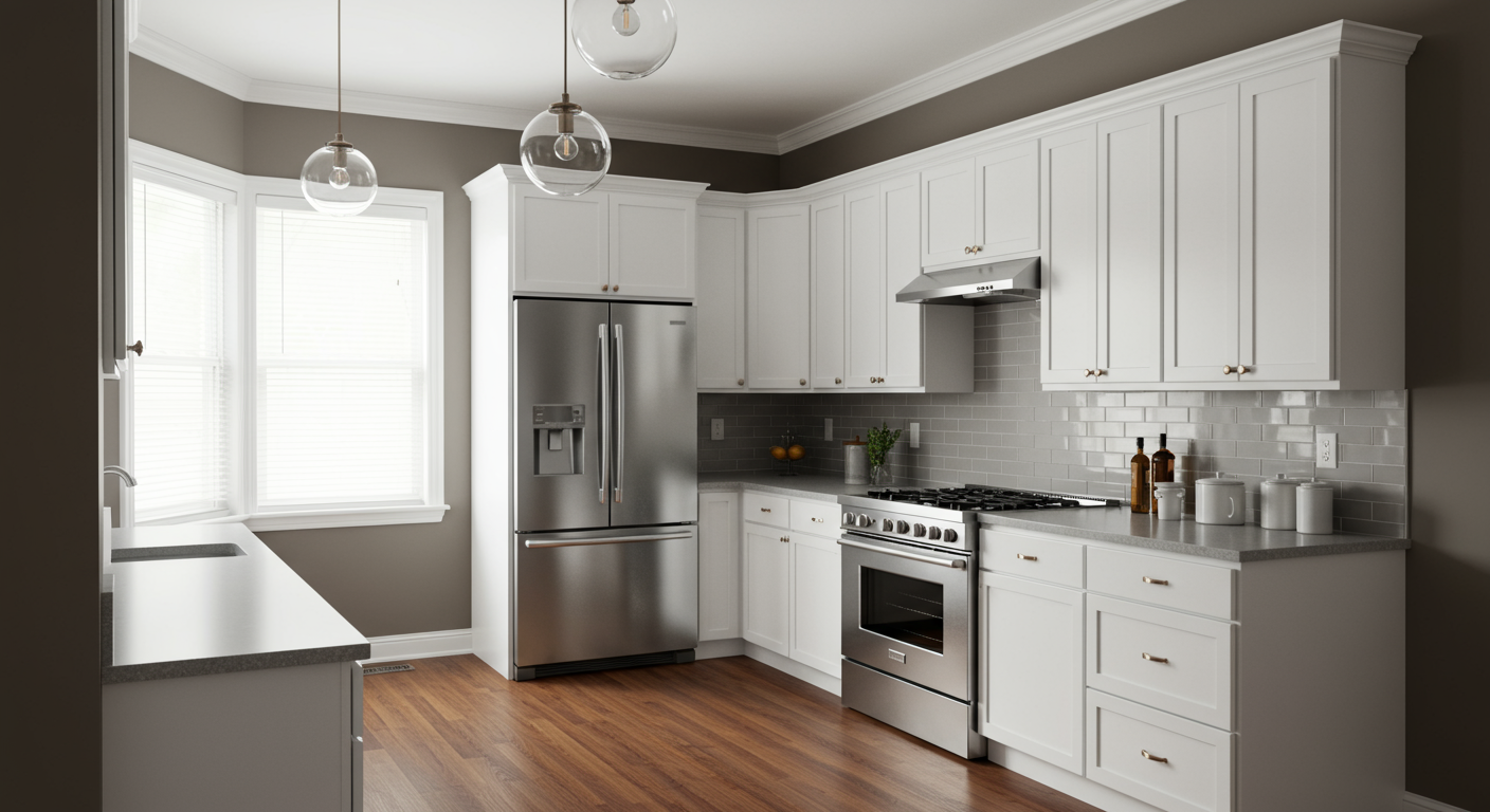 Paint: What was the main goal? To surround this beautiful new kitchen in the perfect balanced white. Goal Achieved! We used Farrow and Ball Strong White for the walls and Sherman Williams Pure White for the trim.